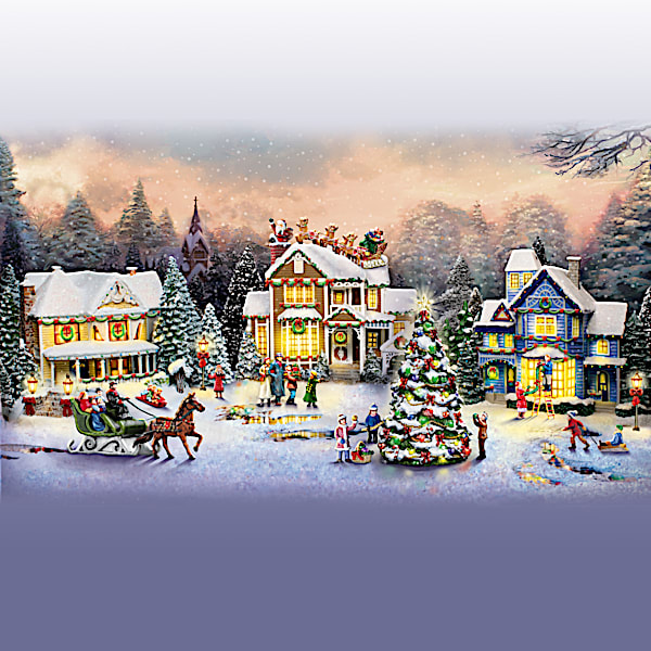 Thomas Kinkade Christmas Village Set With Lights And Music